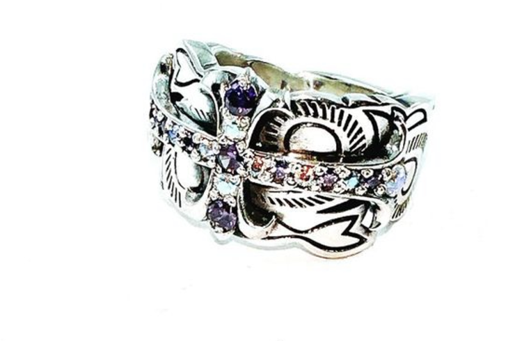 2024/05/06こんにちは!! 名古屋大須シルバーアクセサリー&レザーショップLEGALISSの松本です!! 今回はカスタムリングについてご紹介します! Legalss Original 〜カスタムメテオリング〜 今回のお客様は当店で扱っているオリジナルリリングに興味を持って頂きカスタムさせて頂きました! クロスのセンター部分には1石とばしでアメジストパープルCZを入れ、サイドは1石とばしでミスティクレインボ... -