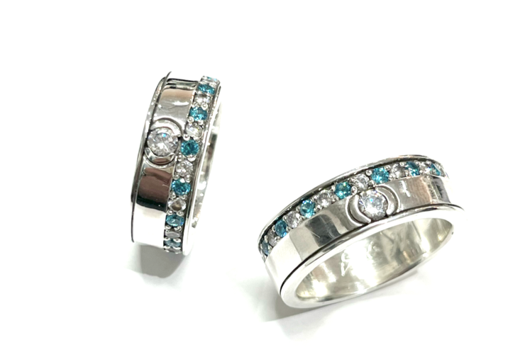 2024/05/18こんにちは!! 名古屋大須シルバーアクセサリー&レザーショップLEGALISSの菊地です! 今回はカスタムリングについてご紹介します! "Pair Ring" 〜Atre Pave〜 お二人の結婚指輪を探されていたお客様が 来店され、レガリスオリジナルリングを 購入してくださいました!! 女性の方がとても気に入られており、 石の色も綺麗で鮮やかなロイヤルブルーを 交互に変更し シンプル且つ存在... -