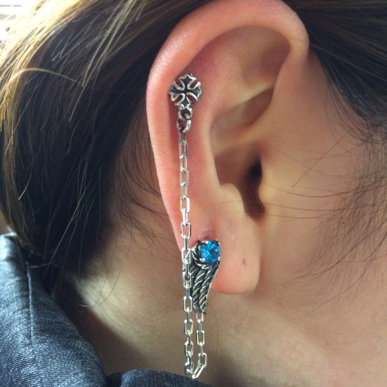 今回は2つのピアスを使ってチェーンを使い繋いだものです(^ ^)