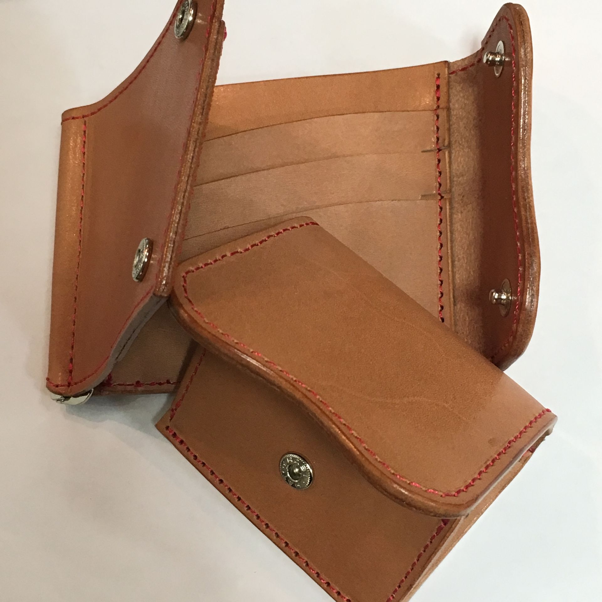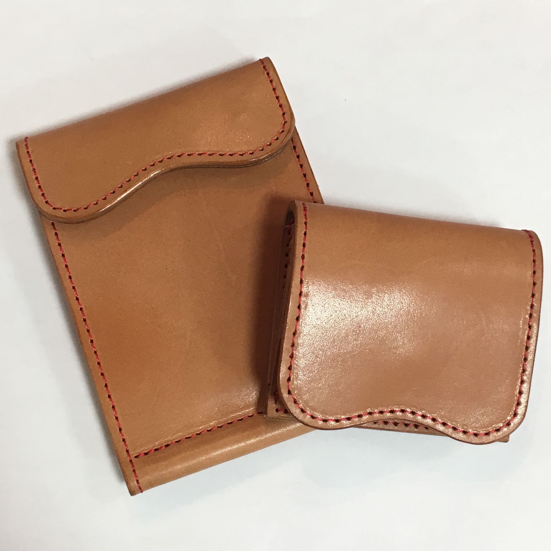 シンプルなヌメ革ですがステッチをアカにしておつくりさせて頂きました(^ ^)